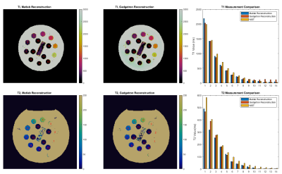 the reconstructed T1 and T2 values, and our results suggest a good match